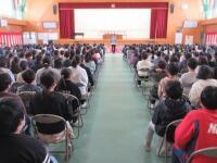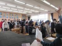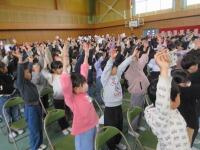 が体育館に集合して、式中に歌う「この星に生まれて」の練習