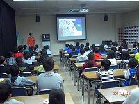 そして、海浜自然の家に到着、オリエンテーション・入所式を行いました。「よろしくお願いします。」食堂も広くて、おいしい夕食でした。