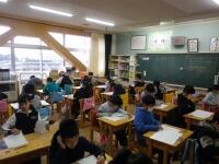 教室にご案内!あいさつの後、まず3時間目には『ぴょんぴょん