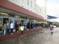 校庭では学年ごとに並び、人数の確認をしました。静かに集合することができました。
