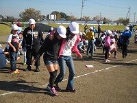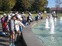 全員参加の二人三脚。 噴水クイズで一休み。