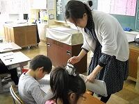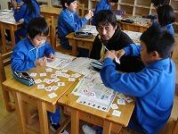 毎週木曜日にALTのジョン先生と外国語活動を楽しく勉強しています。11月22日は「what do you want ?」という単元を学びました。友達から「What do you want ?」と聞かれたら、必要なカードをもらい、自分の名前を完成させるという学習でした。アルファベットカードを用いたカルタゲームなども行い、とても楽しそうに英語を話したり、聞いたりする姿が印象的でした。
