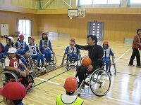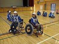 11月16日(金)5・6時間目に車いすバスケットを行いました。最初は車いすに乗ることに不安もあるようでしたが、車いすに乗ったまま「リレー」や「鬼ごっこ」をしたことで、車いすにも慣れ、バスケットの時には満面の笑みで取り組んでいました。また、講師の佐々木さんの話をよく聞き、福祉とは何かや障害のある方の生活などについて詳しく学習することができました。