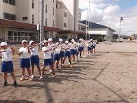 多目的広場で開会式。 低学年によるへびとび。