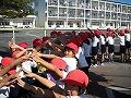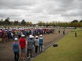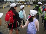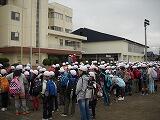 学校での出発式です。手をつないで、栃木市総合運動公園まで歩きました。