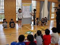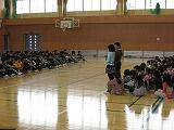 集会タイムに、竜巻発生時の避難訓練を実施しました。近隣でも被害が出ていることから、子どもたちは真剣に取り組むことができました。