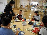 昼食もなかよし班ごとにとりました。6年生は家庭科の学習を生かして自分で弁当を作りました。栄養バランスをしっかりと考えて作れました。