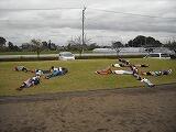 まずは準備運動。保護者の方は特に念入りに。