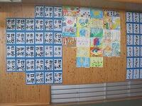 会場内には児童の作品のほか、140周年を記念して児童会で企画した合小カルタも展示されました。