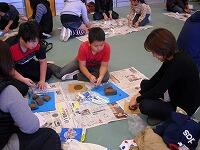 ファミリー参観時、親子ふれあい活動としてうずま焼き作りに挑戦しました。