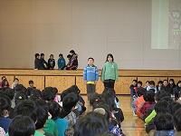 創立140周年を記念して作った合小カルタを紹介した後、暗唱にチャレンジしている