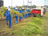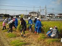 稲刈りを行いました。台風の合間の晴れの天気に恵まれ、無事に実施できました。