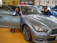ショールームで運転席に乗りました。見学の前にビデオで学習もしました。