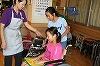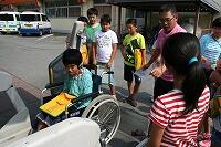 利用者の皆さんといっしょに体操をしました。福祉車両にも乗りました。