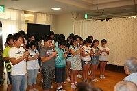水俣病についてのお話をうかがった後、みんなで「海のうた」を