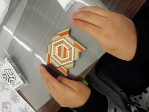 かまぼこの板で作った絵や工作の作品を鑑賞しました。