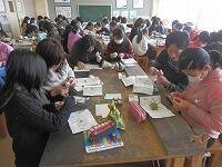 2/9(火)6年生の親子ふれあい活動として、コサージュ作りをしました。その後は、いっしょに給食を食べました。卒業まで残りわずか。今日作ったコサージュを付けて卒業式に臨みます。