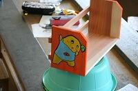 6年生からは本棚とCDラジカセカバーをお礼にプレゼント。