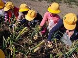 お世話になっている川上さんの畑で、タマネギの収穫を