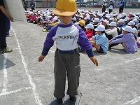 4/28(木)1年生のシャトルランを実施しました。6年生は、記録と先導の