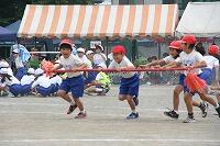 5,6年生の横綱引き。倒れても起き上がる根性を見せました。