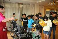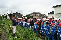 収穫後は教室で6年生がじゃがいもを配布しました。