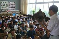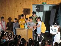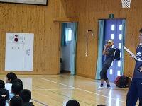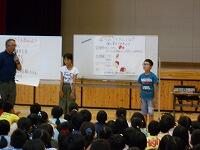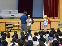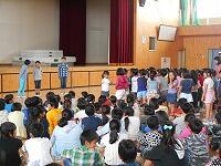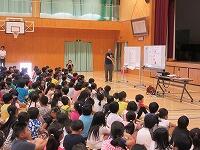 6月15日(水)は県民の日。県民の日を記念して、演劇鑑賞教室が開かれました。劇団影法師の方たちによる、妖怪影絵劇「ゲゲゲの鬼太郎」の鑑賞です。劇を通して、自分の弱い心に打ち勝つこと、正しい行いをする勇気、友達を思いやる心、物を大切にすることなど、たくさんのことを考えることができました。鑑賞後のワークショップでは、実際に効果音で使われていた道具を使って音を出したり、参加者全員で手や足を使って効果音を出してみたりと楽しい活動もありました。鑑賞後、「夢の世界が終わったよ。」とつぶやいている4年生が印象的でした。