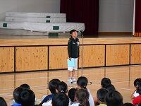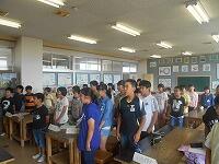 6/14(火)不審者の侵入を想定して避難訓練を行った後、防犯教室を実施しました。駐在所とスクールサポーターの方に不審者に遭遇した場合にどうしたらよいかを教えていただきました。