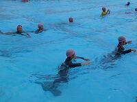 穏やかなプールですが、それでも冷静にしないとなかなか体が浮きません。