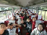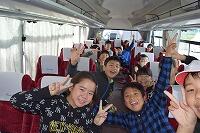 出発式(いよいよ出発。)バスの中(元気いっぱい。レクで楽しく過ごしました。)