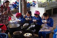 (鮭飯と漁師鍋を班で協力して作りました。作り方を間違えた班もありましたが、