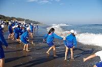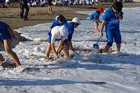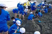 砂浜活動 (潮くみリレーや砂の造形活動をして楽しみました。)