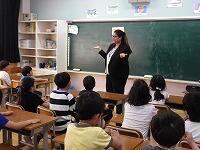 とっても元気なビシャカ先生!!次の外国語活動の時間が楽しみですね。
