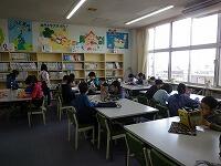 2時間目、図書室では6年1組のみなさんが、本を借りて読んでいました。図書館担当の田村先生も大忙し。「この本とても面白いです!」と教えてくれた子もいました。全員の貸し出しが終わったところで、担任の小林先生が、、、