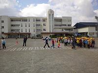 1・2・3年生のみなさんは、模擬道路を使用しての横断歩道の安全な渡り方を学習しました。信号が青になってもすぐに渡らず、必ず「右・左・右」と車が来ないか確かめてから渡ることを学びました。