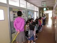 探検』をしました。静かに並んで校内を巡ります。4階の特別教室にも入ってみました。「うわ~パソコンがいっぱいある!」配膳室ものぞかせてもらい、ワゴンの準備をしてくれている山本先生にも会えました。「すご~い。」「おなかがすいてきちゃった~。」