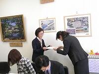 まず、委員のみなさんに委嘱状をお渡しし、協議会の会長・副会長を選出の後、「平成29年度学校経営方針」について説明し、承認をいただきました。