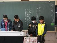 そして、6月にマイチャレンジで合戦場小に来る予定の中学生4名も、打合せのため午後に来校。下校時には、「あいさつ運動」のお手本を見せてくれました。