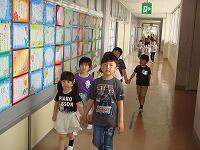 先日、担任の先生と一緒に学校の中を探検した1年生。