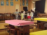 昼休みには、運動委員会児童や6年生が「入退場門の設置」「テントのひも縛り」を行ってくれました。