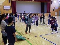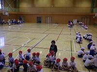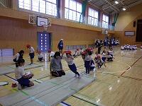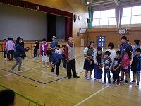今年度のふれあい交流も2回目!今日は、1年2組と6年2組のみなさんが、合戦場2地区の方々と体育館で輪投げを楽しみました。