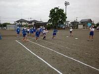 休み時間には、リレーの選手が実際に走る練習をしました。遊んでいる児童も安全に気を配って、トラックに入らないよう、遊具などで工夫して遊んでくれています。