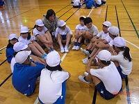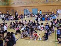 さて今夜の活動は、お楽しみ『都賀地区小学校ふれあい交流』です。家中小や赤津小の5年生と一緒のグループになって活動しました。自己紹介では恥ずかしそうにしていた子どもたちも、人間知恵の輪やドッチボールなどの活動を通して、どんどん仲良くなりました。