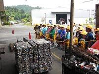 アルミ缶をプレスして、直方体の積み木のような形にすることも教えていただきました。