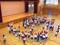 縦・横よく見て広がることができました。ラジオ体操も実際にやってみました。基準となる1年生の「はい!」の声が、とても元気よかったです。みなさん、がんばりました。