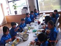 16日(火)宿泊学習2日目!今日もみんな元気いっぱい!自然の家の食事がおいしくて、おなかもいっぱい!!事前に食育の授業で学んだ栄養のバランスのとれた食事を心がけていました。