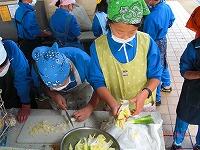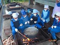 午前中の活動は、『野外調理』です。みんなで、「大鍋力うどん」を作りました。説明をよく聞いてから、役割を分担し、かまどの準備、野菜や魚の下ごしらえに取り組みました。