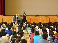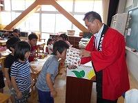 校長先生・教頭先生のお話、栄養職員のお話、そして、みんなでおいしく給食をいただきました。最後に、子どもたちからのお礼の手紙をプレゼントして、お話もしていただきました。