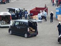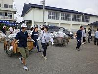 PTA役員のみなさんと教職員で役割分担して、各地区から回収された、新聞・雑誌・段ボール・アルミ缶・牛乳パック・エコキャップを、分けてコンテナに積み込みました。