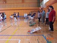 投げ方の見本を見せていただいたのでとても上手になり、輪が一列に並んで入った児童もいました。楽しい交流となりました。